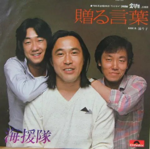 实际上,在日本有很长一段时间,武田铁矢是和另外一个名字联系在一起的,那就是“海援队”。这里所说的海缓队,并不是由坂本龙马在江户时代末期所创立的那个贸易组织,而是由武田铁矢、中牟田俊男(下图右)以及千叶和臣(下图左)组成的一个艺人团体。