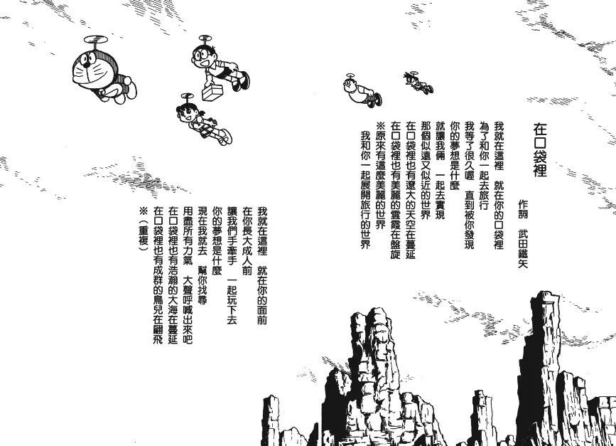 看过《大长篇哆啦A梦》的朋友们,都知道在漫画中会有一页上面写有歌词,而歌词的署名几乎都是武田铁矢,那么本期文章,我们就来认识一下,这个名字经常出现在大长篇中的男人。