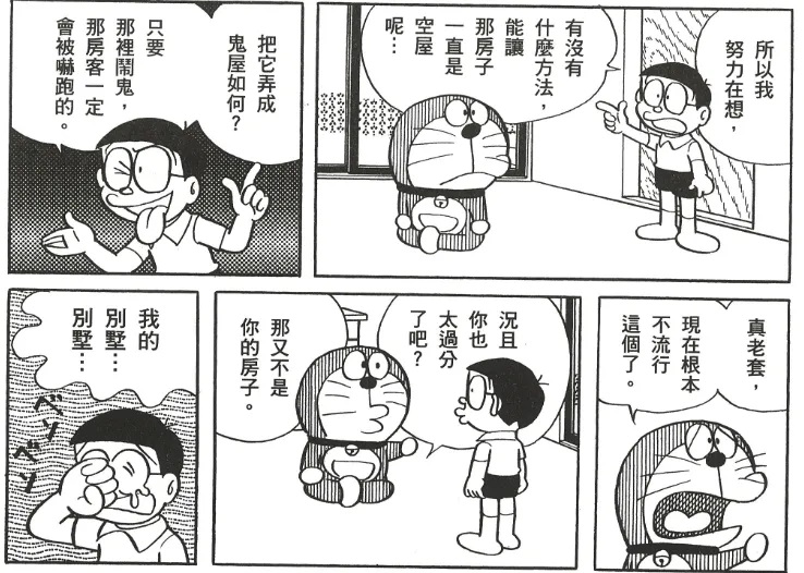 《お化け長屋》,中文可以翻译成“闹鬼的长屋”,是落语中一个非常有名的段子。在《幽灵干》这个故事中,当大雄让哆啦A梦想办法使屋子闹鬼的时候,哆啦A梦就说:“这是老掉牙的套路了。”可见,哆啦A梦应该也是知道这个故事的。