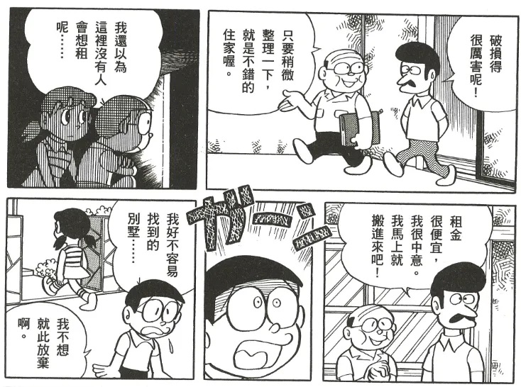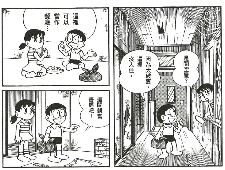 在单行本第12卷有一篇为名《幽灵干》的故事,这则故事说的是,大雄看中了一间空屋子,想把这里做为自己的秘密基地,还邀请了静香,但没想到的是,有人把这个空屋子租了下来。不甘心的大雄就去找哆啦A梦帮忙,让哆啦A梦想办法使那个屋子闹鬼,把那个租客赶走。
