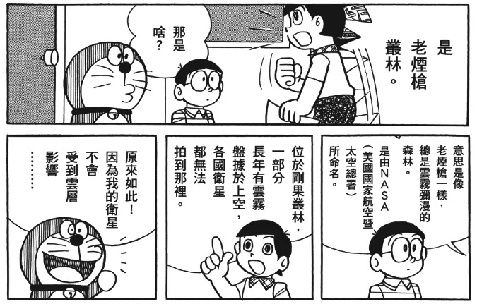 另外,本作也是出木杉在“大长篇”中首次出场,不过他并没有参与冒险,只是为大雄讲解了“烟鬼森林”,而出木杉这一工具人的作用,也在之后大长篇中经常出现。