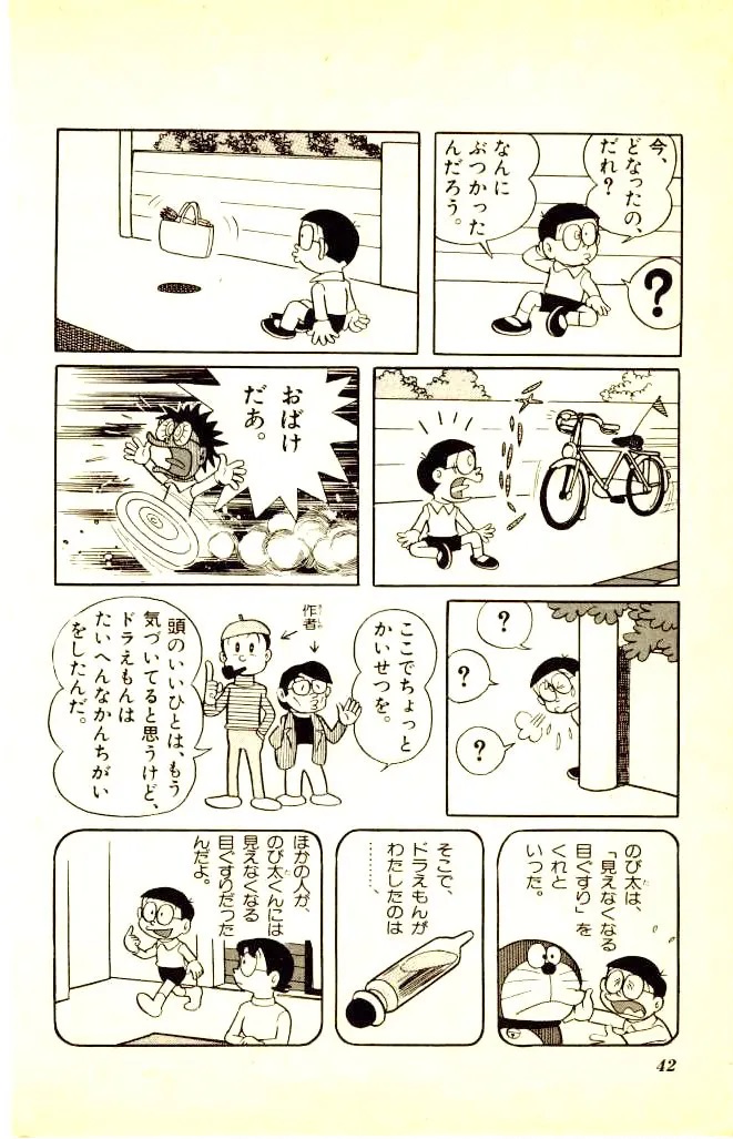 比如在《看不见的人眼药水》(单行本第10卷)这个故事当中,两位藤子不二雄老师还共同出现,为读者讲解剧情。