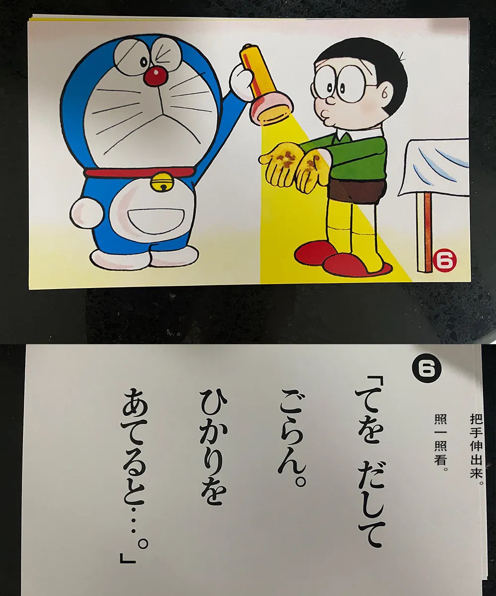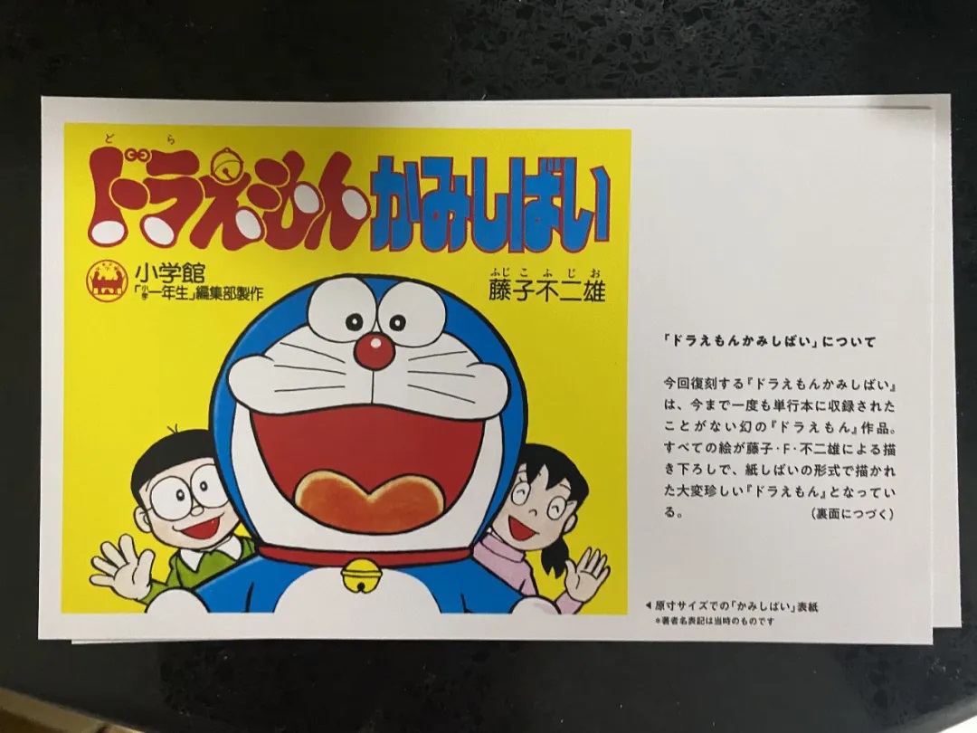 这是附带于小学馆发售的《哆啦A梦》单行本50周年特别版第二卷中的内容。名字叫做“ドラえもんかみしばい”,写成中文的话就是“哆啦A梦纸芝居”,其中“纸芝居”有点类似于我们中国的“拉洋片”,可能年龄大一点的朋友们会比较清楚一点。