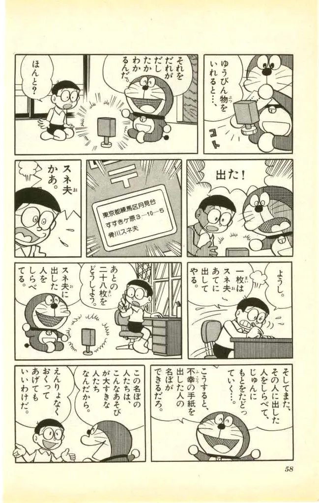 漫画中,第一次明确大雄他们所住地方的名称是在收录于单行本第15卷《不幸的信同好会》这个故事中,在这个故事里,出现了小夫家的地址:東京都練馬区月見台すすきヶ原3-10-5。