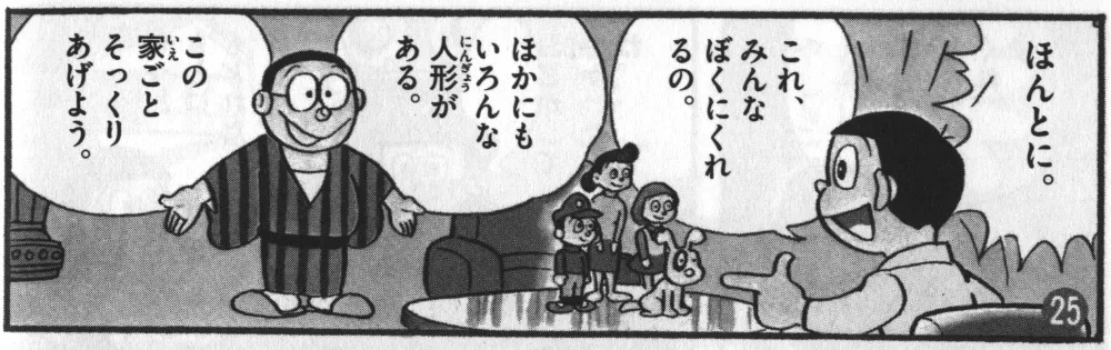 在单行本第9卷有一则名为《我是桃太郎的什么人》的中篇故事,这篇故事讲述了哆啦A梦等人一起去揭开桃太郎的秘密。