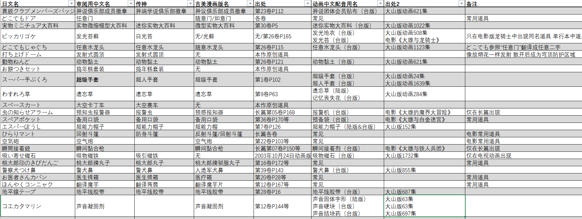 cfandora同时,EK也列了一份名词表。我们翻阅了漫画和动画,比对其中对这些道具的翻译,然后来综合考虑,最终用什么翻译。