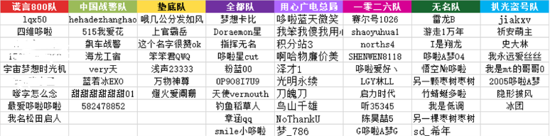 | 6 | 2017-07-29 | (胜)无名队vs用心广电总局 | 29.5:22.5 | hehadezhanghao/ 0P9O8I7U9/ 冰块大智障 | ||