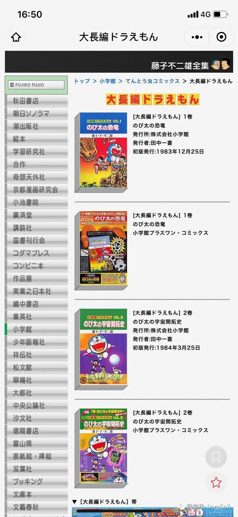 可以在我的藤子不二雄收藏小程序中查询相关资料。