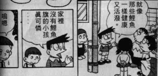 出自漫画短篇卷6的《鲤鱼旗》。在家门口挂鲤鱼旗是日本鲤鱼节的一种习俗。