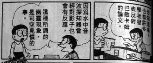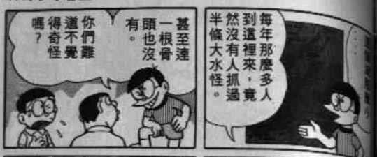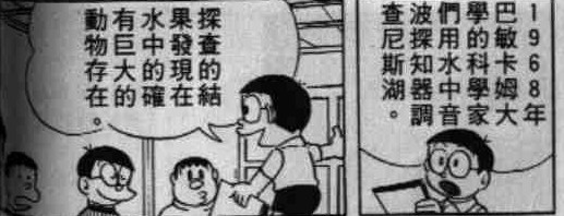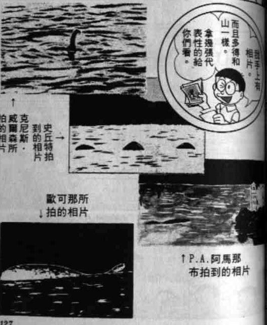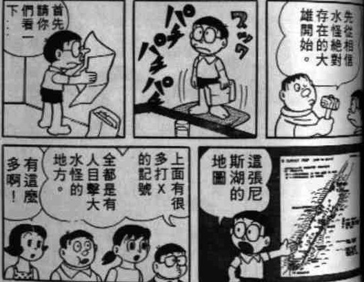 出自漫画短篇卷6的《尼斯湖怪兽来了》。大雄与同学木鸟高夫针对尼斯湖有无水怪进行辩论。