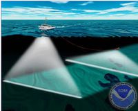 提到的水中声波探测器即为声呐。声呐是英文缩写“SONAR”的音译,其中文全称为:声音导航与测距,是一种利用声波在水下的传播特性,通过电声转换和信息处理,完成水下探测和通讯任务的电子设备。它有主动式和被动式两种类型,属于声学定位的范畴。声呐是利用水中声波对水下目标进行探测、定位和通信的电子设备,是水声学中应用最广泛、最重要的一种装置。