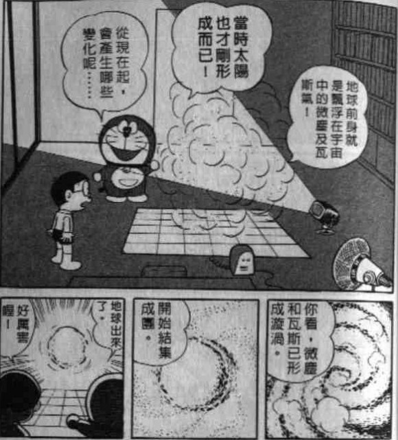 从这里开始就要用到比较长的漫画原图来讲解地球的诞生了。