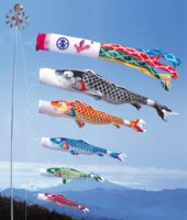 与桃花节是女孩子的节日一样,鲤鱼节作为男孩子的节日,也非常热闹。按传统习惯,在这一天,有儿子的家庭都在室内摆设显示出英武气概的娃娃(如歌舞伎中常出现的古代的英雄好汉),同时在室外挂鲤鱼旗和七色彩旗。纸做的黑鲤鱼和红鲤鱼在天空迎风摆动,犹如在大海里遨游。传说鲤鱼是能够勇敢地跃上“龙门”的,所以用它来祝愿男孩子像鲤鱼般健康成长,朝气蓬勃,奋发有为。