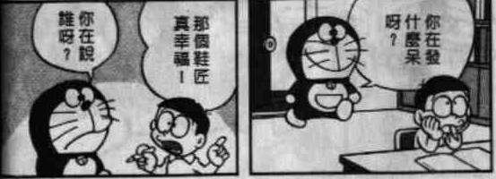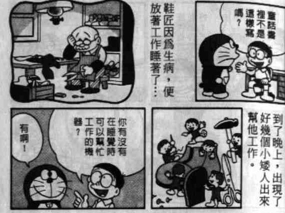 出自漫画短篇卷7的《小机器人》,大雄幻想着有几个小人在自己睡觉时帮忙做事=w=。
