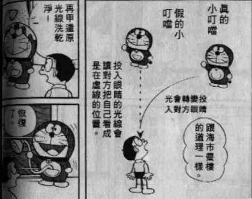 出自漫画短篇卷10的《幻影淋浴头》。在讲解道具时,哆啦A梦提到了海市蜃楼。