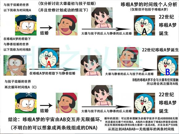 注:大雄的后人怎么结婚,哆啦A梦都是可能或不可能诞生的。
