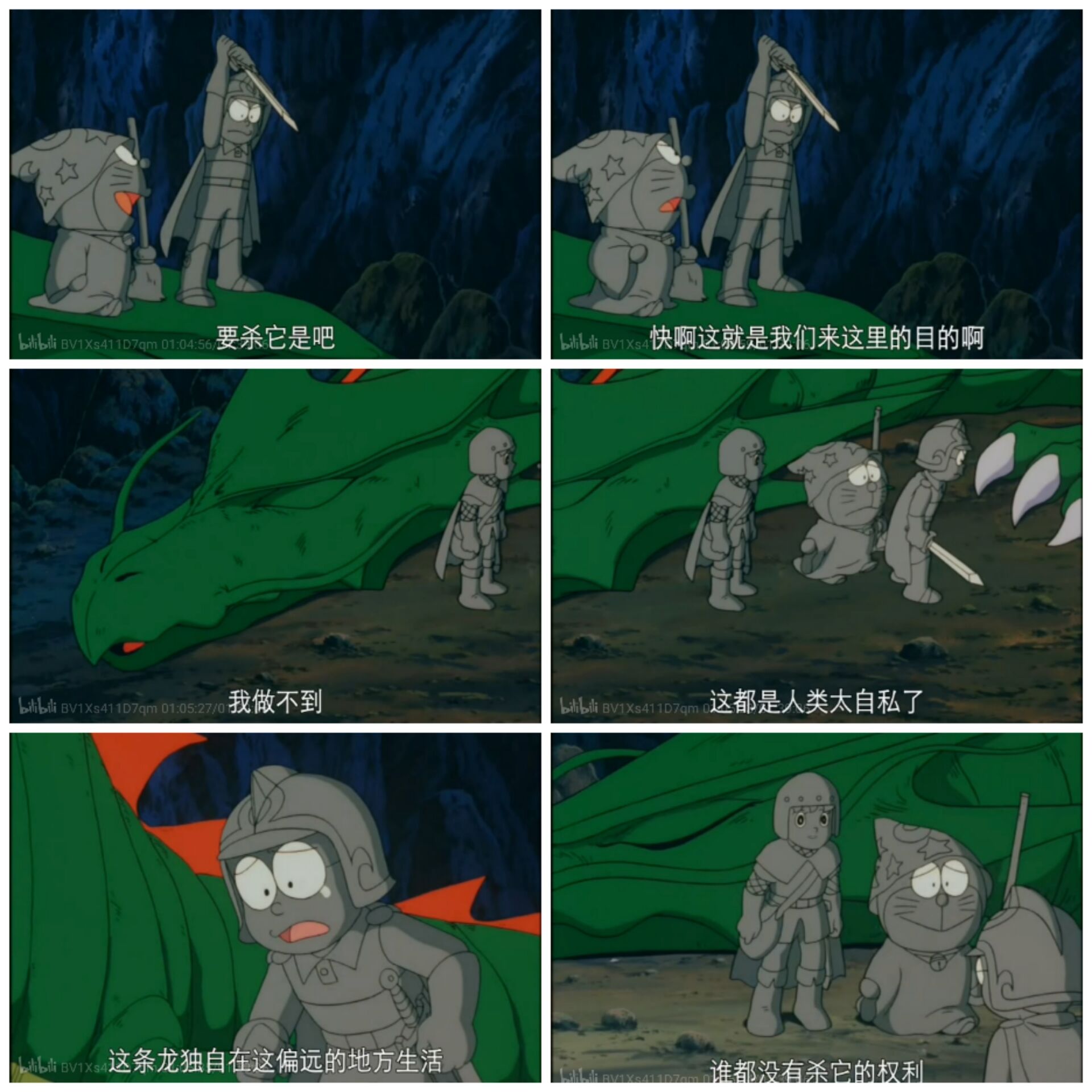 在电影《大雄与梦幻三剑士》中,斩杀龙既可以获得永生的机会,又可以避免被龙反杀,然而面对被自己击倒而奄奄一息的龙,大雄完全可以杀死它,可是他没有这么做。此举获得了静香丽亚的钦佩与龙的敬重与帮助。