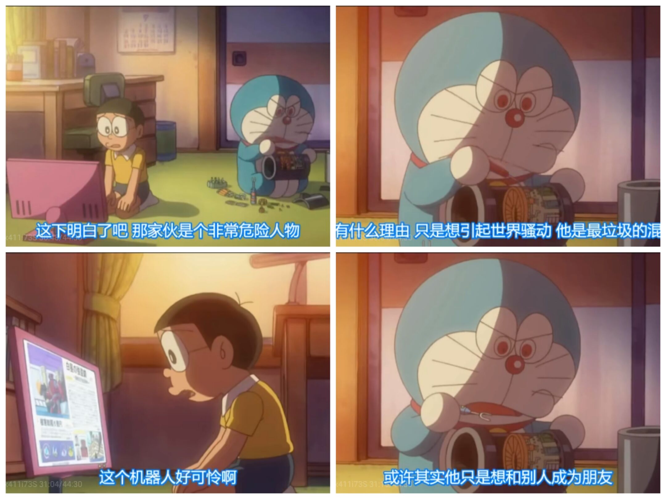 面对恶贯满盈的机器人逃犯,大雄也尝试理解他的情感,一句“他也是因为什么原因才不得已这么做的吧?”感动了犯人贾斯汀,最终让其弃暗投明。