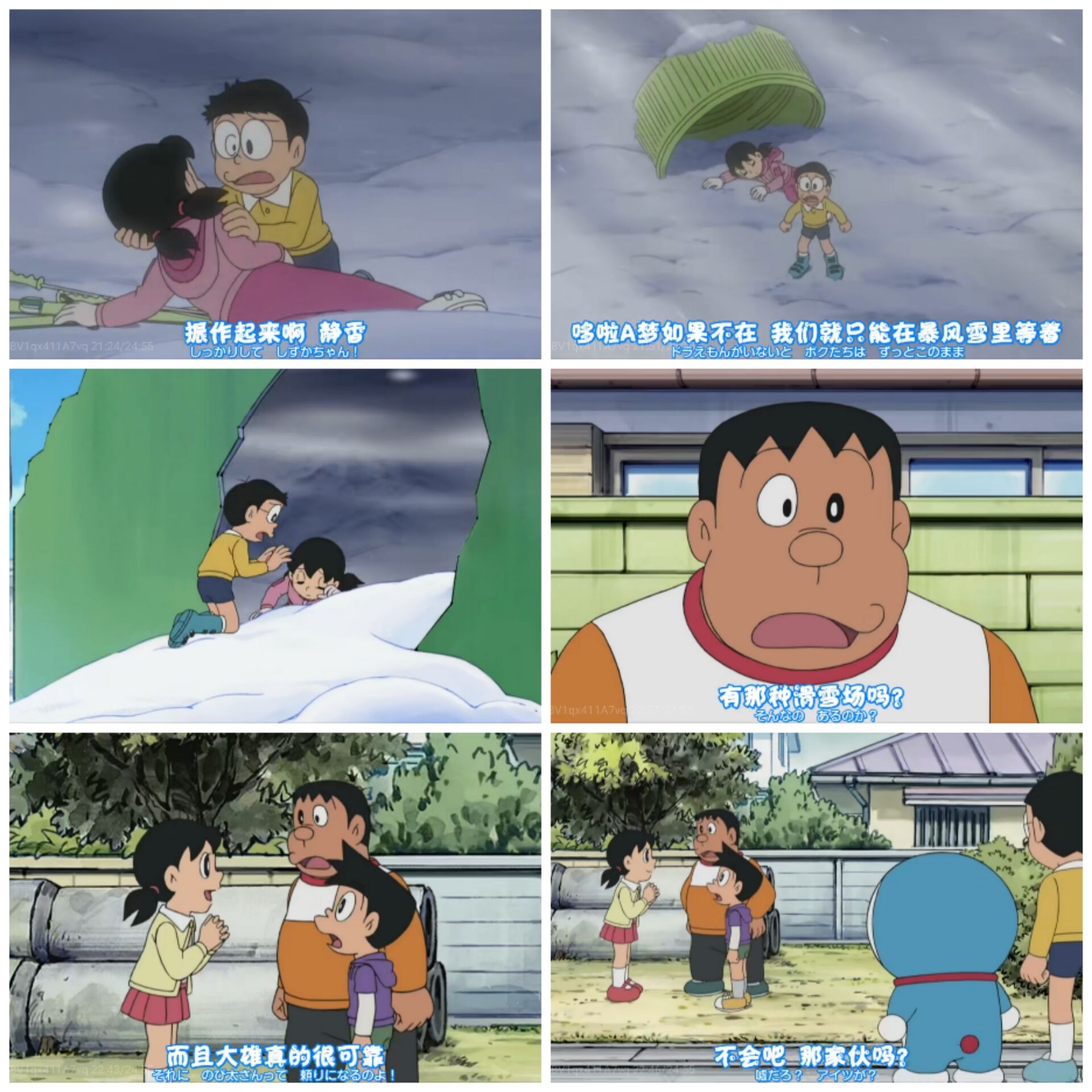 静香也曾在漫天暴风雪中照顾着从过去的轮回中赶来,冒冒失失、笨手笨脚的大雄。(TV《雪山罗曼史》)