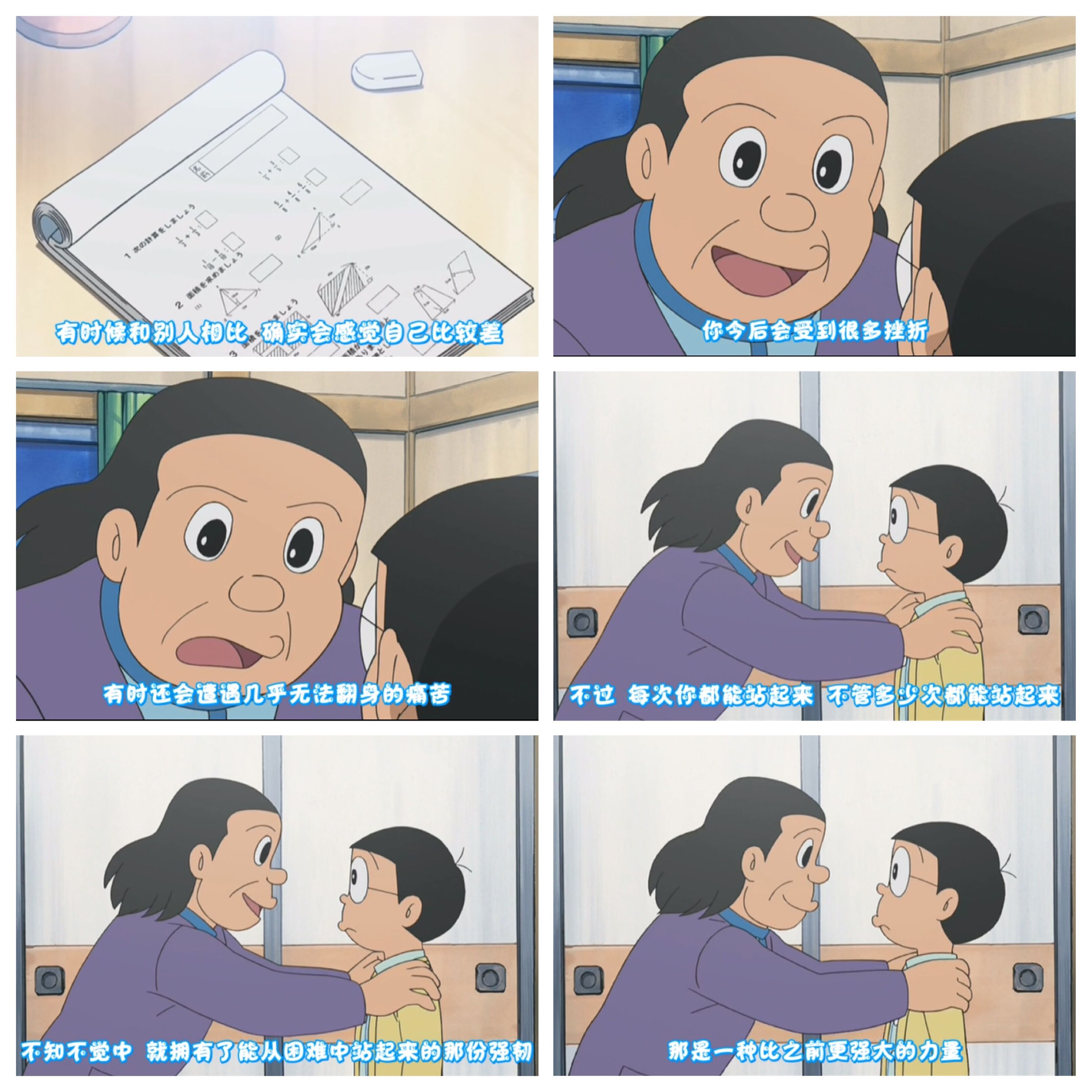 当大雄沉溺于回忆而不思进取的时候,奶奶留下的不倒翁鼓励其克服困难、努力前行(TV《那天那时那个不倒翁》);