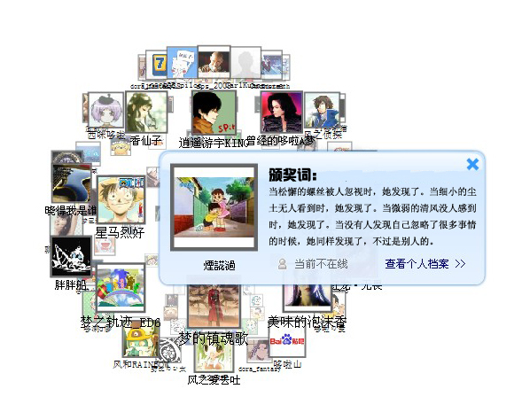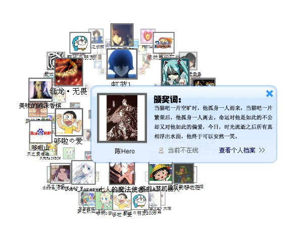 接下来,感动猫吧十大人物第五位,他的关键词是知音,大屏幕滚动起来!
