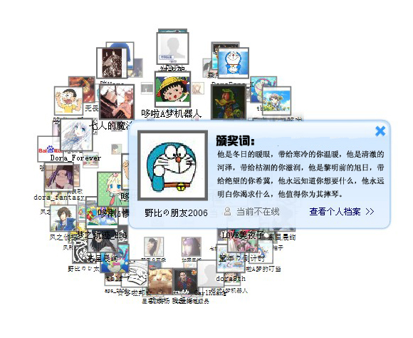 或许猫吧很少有人知道这个人,也或许很少有人注意到这个人,至少我曾经没有认真注意过这个人,直到有一天我才发现,几乎猫吧所有的消息都是他发的,每次他都最快的发出最新的哆啦消息,他没有多余的语言,每次来也匆匆去也匆匆,他没有和大家对话过几次,人们看完他的消息也没有想过和他说话,他的一切都扑朔迷离,谁都不知道他的身份究竟是什么,我们只知道他有一个ID叫做小白鸟星星,有一个外号叫“资料帝”。