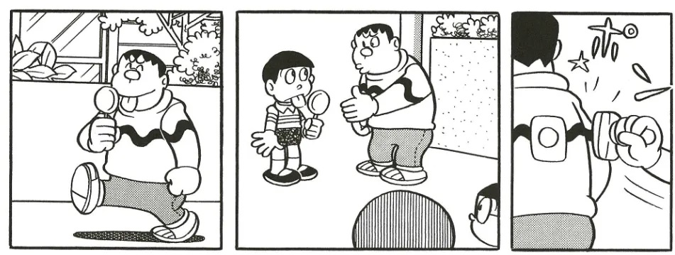 既然是“生活搞笑漫画”,那么作品中角色的衣、食、住、行等各个方面,都会遵循现实生活,比如大大雄他们穿的就是最普通的T恤、短裤。吃的是拉面、铜锣烧等日本常见的食品,住的就是日本最普通的“一户建”等等。