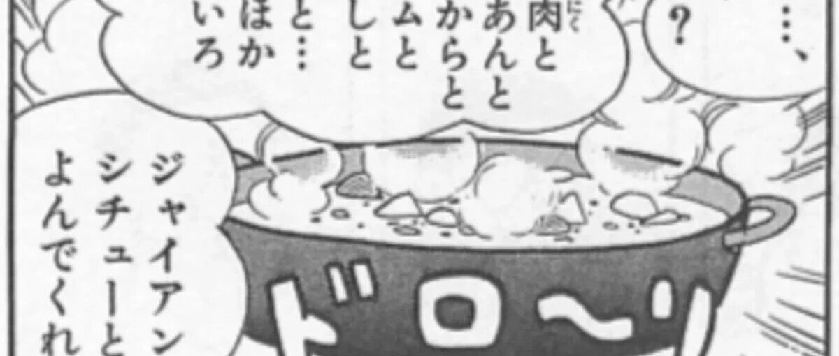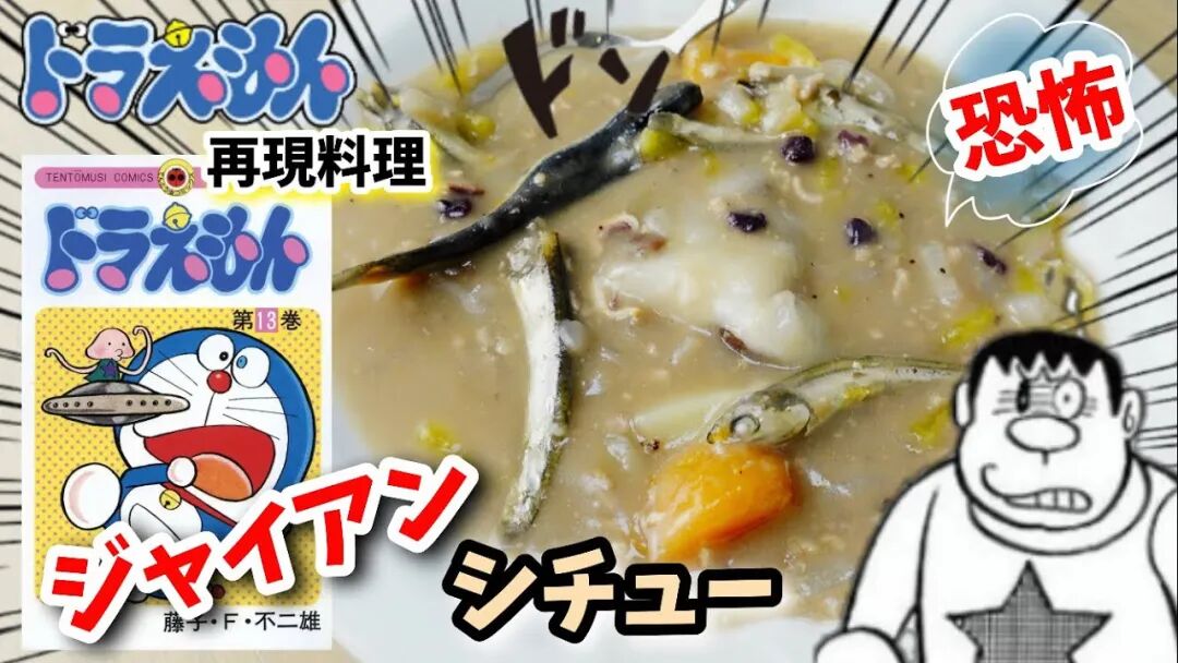 我们都知道在《哆啦A梦》漫画中,胖虎有两大爱好:唱歌和下厨,但是这两大爱好胖虎做的都不怎么样。但是胖虎自己不这么觉得,他对自己的厨艺还非常有自信。在单行本第13卷的《胖虎炖菜》这个故事中,胖虎给大家做了一道黑暗料理:将绞肉、咸萝卜、腌鱼腌肉、果酱、鱼干、大福放在锅里乱炖,胖虎将其命名为“胖虎炖菜”。