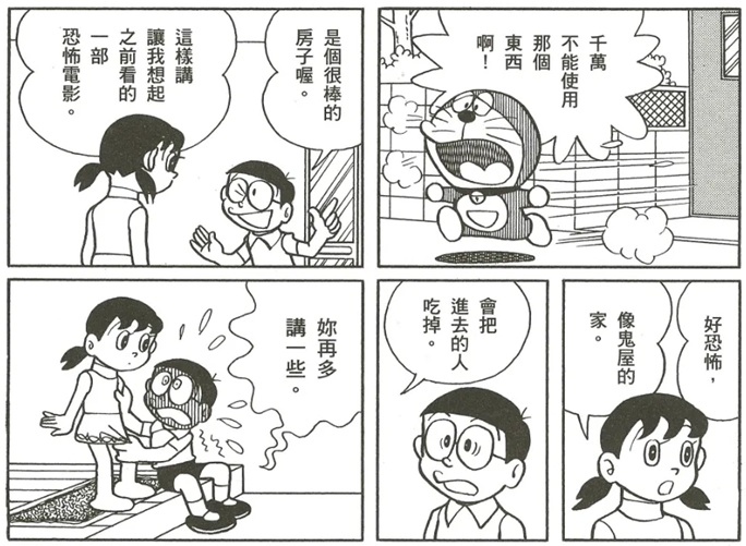 个人认为,藤子·F·不二雄老师在创作这篇故事之前,应该没有看过这部电影,只是知道有一部讲述房子吃人的恐怖片上映,否则,《吃人的房子》这篇故事可能就是另一个模样了。