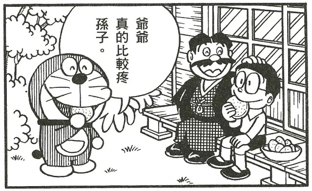 然后就是在单行本第14卷中《梦中的爷爷》中出场的大雄的爷爷。在原著中,并没有提及大雄爷爷的姓名。从故事来看,大雄爷爷的有着典型日式大家长的作风,实际上他也是一个嘴硬心软的人,也非常疼爱自己的儿子——野比大助,在看到自己的孙子之后,也是开心的大笑。
