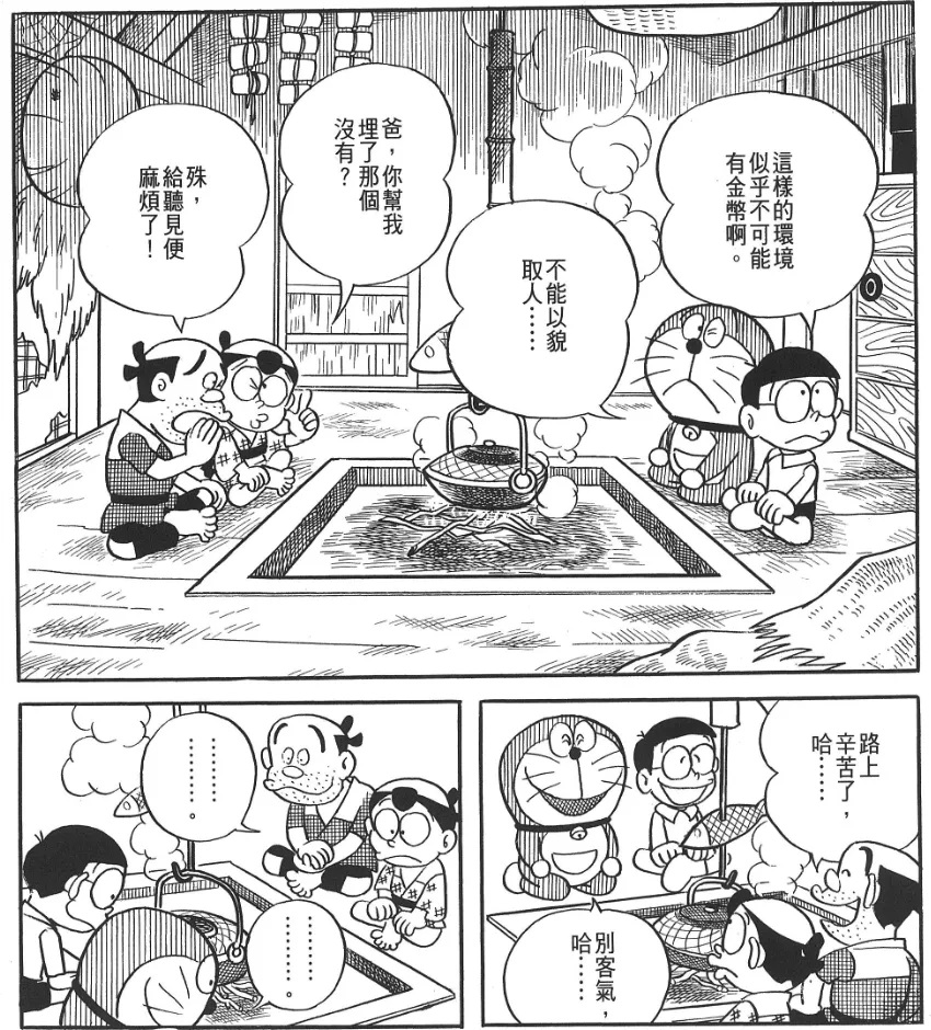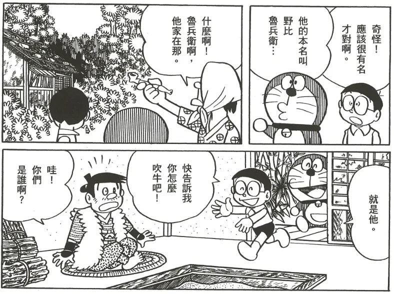 接下来,是出现单行本第14卷《吹牛的祖先》这个的故事中的伸六兵卫(のびろべえ),按时间推算,伸六兵卫生活在日本江户时代的晚期,根据故事来看,这个伸六兵卫应该也只是普通的农民,不过他应该是野比家族祖先当中名头最响亮的一个,是远近闻名的“吹牛大王”,其实这也是哆啦A梦和大雄的“功劳”。
