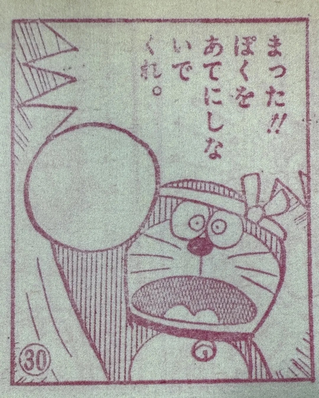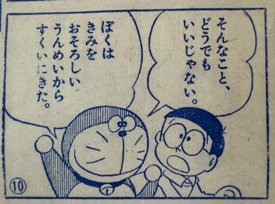 至于为什么会有这种差别,具体的原因不明,但是对此笔者有一个比较大胆的猜想:我们在之前的文章中给大家介绍过,在早期和中后期的连载中,藤子·F·不二雄老师对于一些设定是做了修改的。在早期的连载中,哆啦A梦是以一个不太靠谱的形象出现的,脑袋有点一根劲,做事也马马虎虎,所以早期的连载故事,很多情节都是由哆啦A梦的这种”不太靠谱“而引起的。也许是为了衬托哆啦A梦这种傻呼呼的形象,所以藤子·F·不二雄老师在台词设计上,就让哆啦A梦显得有点口齿不清。