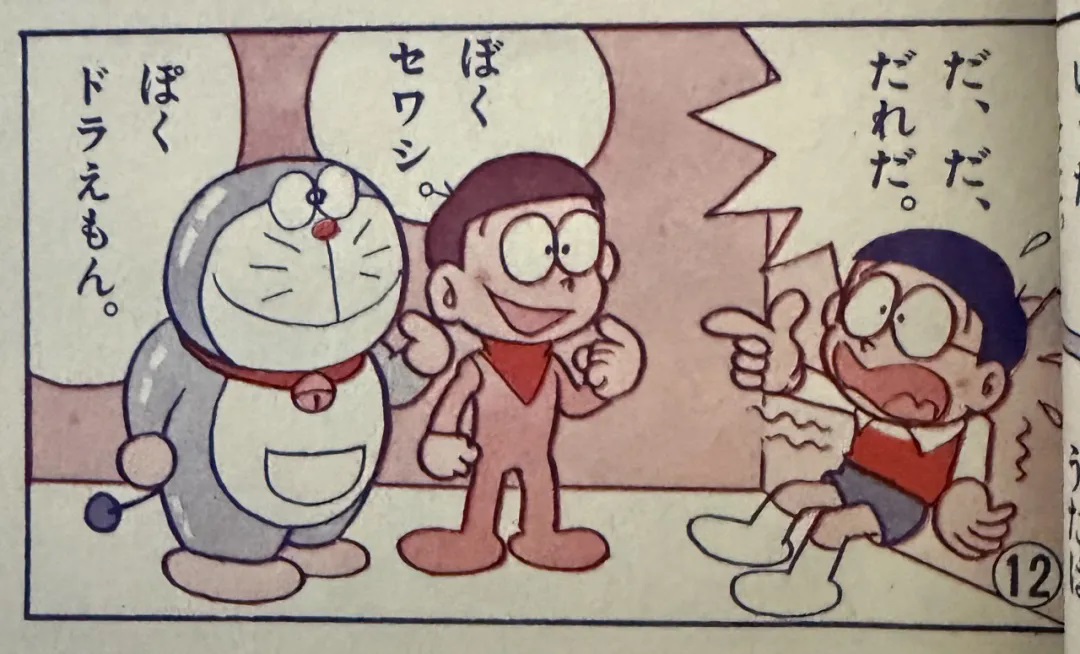 在日语中,“ぼく”就是“我”的意思,读音为“boku”。不过,有意思的是,在早期连载的故事中,哆啦A梦经常把“ぼく”说成“ぽく”,读音为poku。