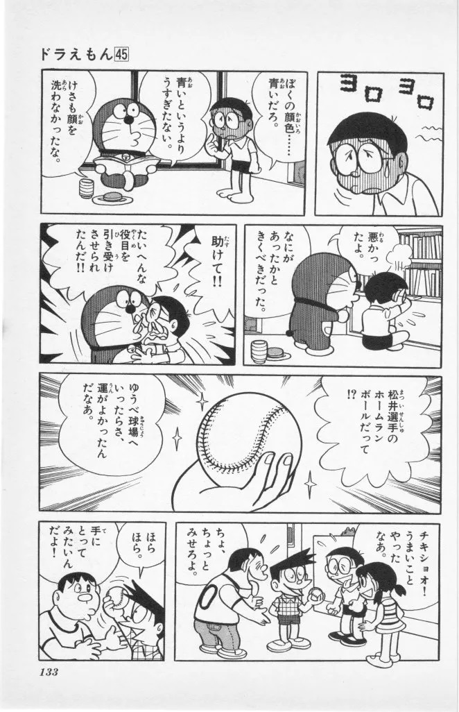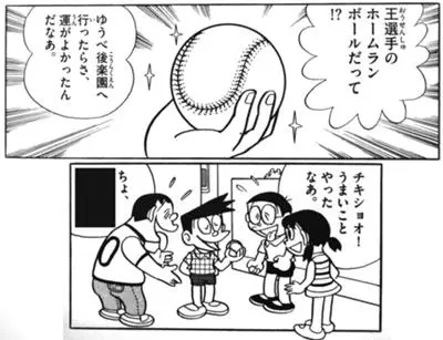 在《哆啦A梦》单行本第45卷《液化药水》,小夫提到自己捡到了松井选手打出本垒打的球,而在早期版本中,小夫则是说捡到的是“王选手”打出本垒打的球,这里的“松井选手”和“王选手”,分别指的是松进秀喜和王贞治,他们都曾是日本著名棒球队——读卖巨人队的王牌球员。