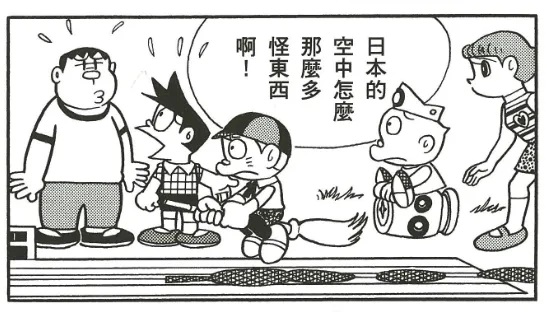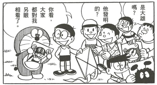 在哆啦A梦拿出的风筝中,有一个风筝的图案就是《千奇百怪》中的主角ミキオ的狗ポンチ。