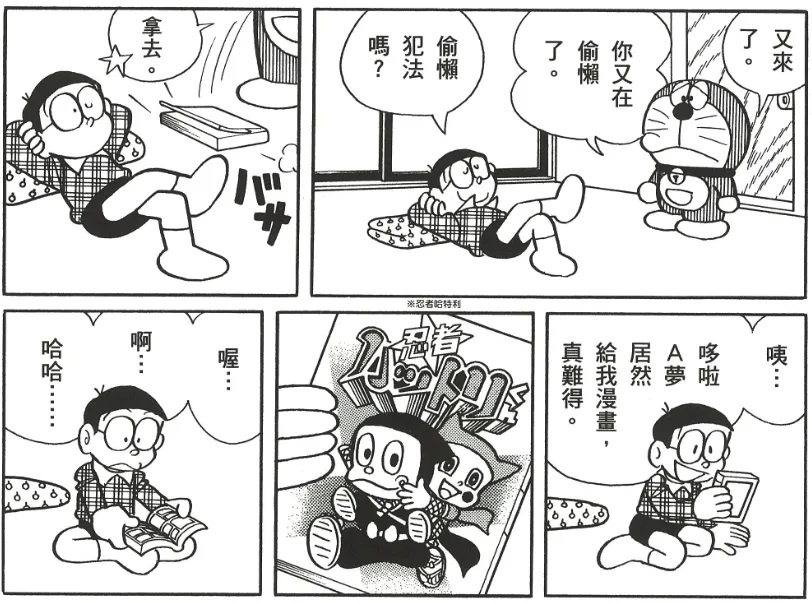 在单行本第28卷《忍者修行组合》这个故事中,哆啦A梦给大雄一本漫画,这本漫画就是《忍者服部君》。