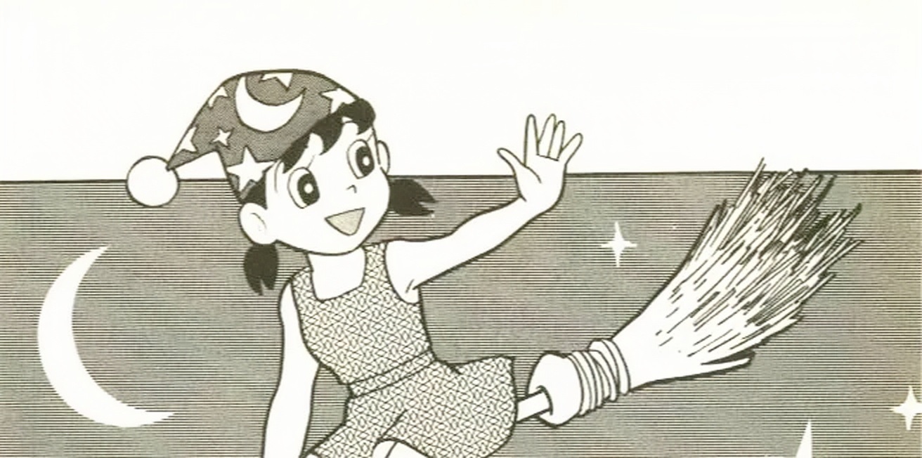 我们在之前的文章中讨论过静香为什么只和男孩一起玩。而在单行本第37卷中的《魔法辞典》这个故事里,就可以看到大雄和静香以及其它女同学们一起在讨论一个电视节目。所以说,在漫画中,静香的女性朋友其实是很多的。