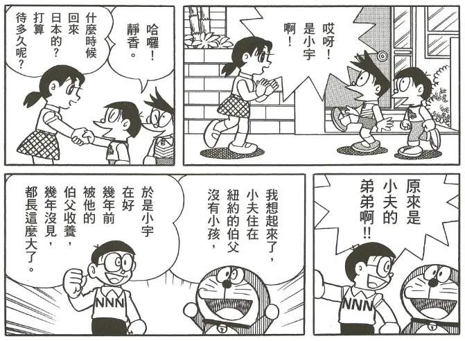 说到小夫的长辈,从漫画中,可以明确得知,小夫至少有两位叔叔,其中一位就是在上文中提到的收养小继的在美国的叔叔,不过这位叔叔并没有出场。只是在对话中提及。小夫提到过,这位叔叔家里比自己家还有钱,而小继在去美国之前,性格跟小夫很相似,从美国回来之后,举止就变得非常得体、彬彬有礼,估计和家教大有关系,从这点上可以看出,小夫的这位叔叔似乎并不像小夫一家这样张扬。