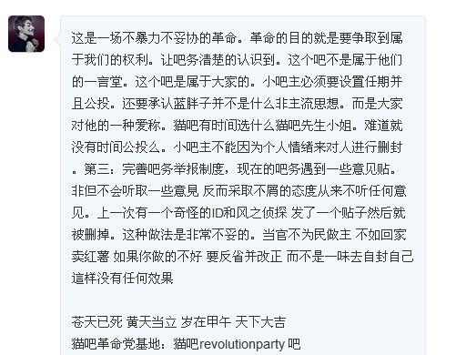 - ^ 吧友对“猫吧革命党”作风的不满