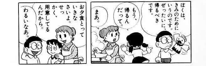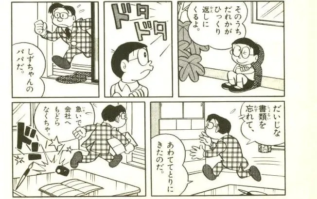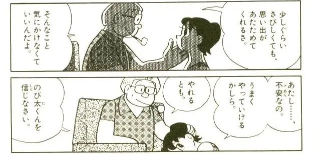 可以看到,在这个故事中,静香爸爸的形象与《大雄的结婚前夜》中的形象是一样的,只不过因为年轻的缘故,头发还没有变白。