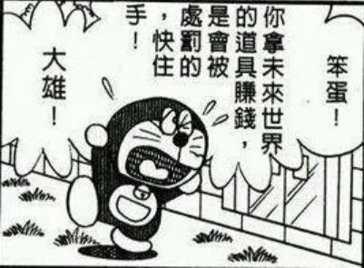 (4) 哆啦 A 梦要是真想弄到钱也是很容易的。(试想你拥有可毁灭世界的道具,随便一个就可以卖出天价好不好……什么可控微型核聚变啊、反重力生成器啊、平行世界生成器啊、超时空传送仪啊、可以通过图灵测试的机器人啊,全尼玛是钱啊)