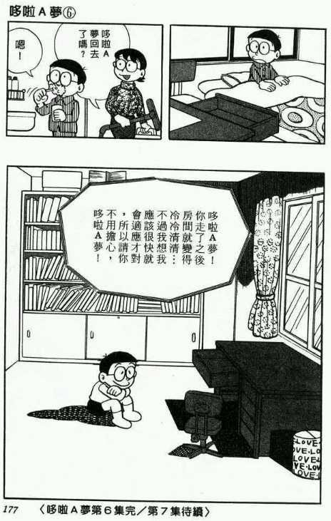(2) 在《大雄的结婚前夜》和《雪山浪漫情》里面,哆啦A梦并不在大雄的身边,说明大雄这时候哆啦A梦已经离开了大雄。