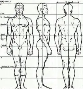 (2) 我们按照这个段子的内容推一下,首先,我们看下面这个成年男子平均身体比例图,我们可以得知,成年男子双手下垂时距离地面的距离约为身体的 3 — 8 :