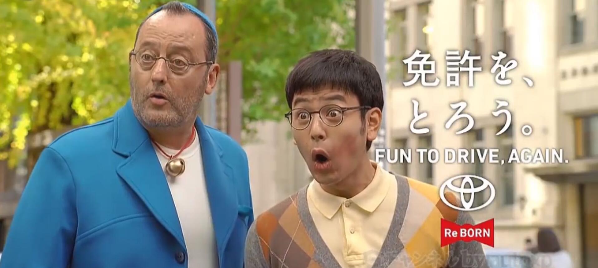 而且,剧中让·雷诺的形象也符合Doraemon形象,但并不是给人以感官上的相似感(比如看起来像、听起来像),而是更具抽象意义的符合。换句话说,剧中让·雷诺在30岁人心目中的形象,与原作中Doraemon在少年儿童心目中的形象对等,二者是对等物(counterpart):30岁的人已不能接受和机器做朋友,于是就找西方人,这大概对等于少年儿童心目中的一个机器人。30岁的人已不能接受人长得像Doraemon那样胖大的身躯,于是找一个身材高大的人——1.91米的让·雷诺,造成对等印象。Doraemon在少年儿童心中是忠实、可靠、偏稳重的形象,如何在30岁的人心中造成对等印象呢?剧中的让·雷诺发挥果然出色,他经常陪伴着Nobita,准备随时提供帮助;他沉默寡言、表情沉稳,整体感觉老成持重;让·雷诺本人60多岁,这种年龄对30岁的人来说是个经验丰富的老前辈。更往深层心理说,在脱亚入欧的日本人面前,法国人是他们在资本主义世界的老前辈。