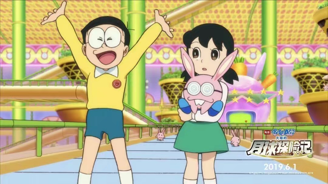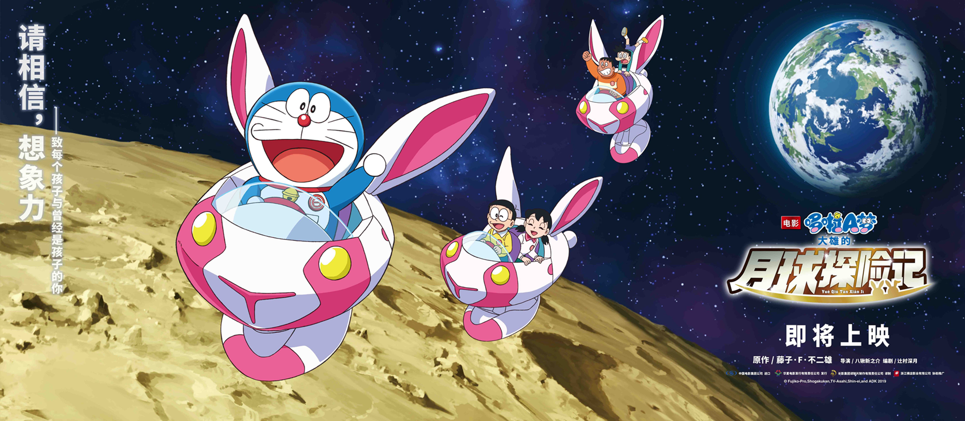还有这部剧场版的主题挺引人思考,想象力是什么?我觉得是未来,因为只有想象是我们探索未知和发明创造的动力,月亮,一个多么美好的名字啊!千百年来,月亮寄托了太多美好的东西,也有很多不论是中国日本还是其他国家的诗人为月亮写过赞美诗,也诞生了很多与月亮有关的节日,比如中国的中秋节,日本的十五夜,也有很多与月亮有关人物和食物,由于古人科技有限,无法去考证,到月球有没有嫦娥?有没有月兔捣年糕?有没有辉夜姬?甚至有没有生物,人们都不知道,只能想象,然而,今年,以想象力为主题的的剧场版告诉我们,有!只要你相信!剧场版以月球为背景,讲述了哆啦A梦和大雄用任意门还有异说徽章在月球背面建立了一个月兔王国,和伙伴们展开冒险并结识了以太人全族,但是以太全族除了露娜全部被抓了,他们又踏上了营救以太全族人和拯救辉夜星的旅程,并最终如寓言所说,千兔降临,光必从归大地,打败boss,拯救了辉夜星,虽然,只是个冒险故事,虽然天马行空,但却夹杂着对想象力与破坏关系的思考,对战争和战争带给人民苦难的反思,让哆啦A梦的粉丝看到了藤子芝山努时代,哆啦A梦剧场版讲故事的方式,就是以想象力为核心,在天马行空中夹杂着很多值得思考的东西,另外,异说徽章从一开始便贯穿全剧,异说徽章象征想象力,很多东西还有事情在现实世界里无法实现的,但你都可以在想象力世界里实现,哆啦A梦的作者不就是这样的吗?从小没什么朋友的他,只能把自己置身在漫画里,我觉得《哆啦A梦》就是作者在想象力世界的缩影,想去另一个地方,怎么办?用任意门啊,想翱翔蓝天,怎么办?竹蜻蜓啊……影评临近,当露卡向哆啦A梦提议用异说徽章将所有以太人变成失去超能力和长生不老能力的人,当大家不解时,露卡说,因为力量有限,我们才努力,生命因为有尽头,所以才美好,影片结尾时,镜头转回了后山,在大雄第一次遇到露卡的地方,大雄静香小夫胖虎一起把异说徽章还有麦克风都埋了,电影在片尾曲中结束。异说徽章象征着想象力,而想象力则是《哆啦A梦》核心,哆啦A梦的初衷就是以天马行空的想象力夹杂着对现实主题与未来的向往与思考,穿越时空,跨越宇宙一直以来都是被反复探讨的主题,它们既是科技蓝图的背景,也是人生哲理的向度。这正是《哆啦A梦》这部作品的伟大之处。