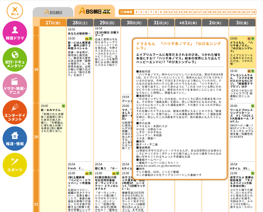 资讯BS朝日4K频道将于下周五开始放送2K放大4K规格的《哆啦A梦》TV动画2020年3月27日・机器猫吧・首发于Bilibili BS朝日4K频道将于下周五(4月3日)开始放送2K放大4K规格的《哆啦A梦》TV动画,也许画质有明显的提升。 BS朝日(非4K频道)和朝日台会继续放送哆啦A梦动画。